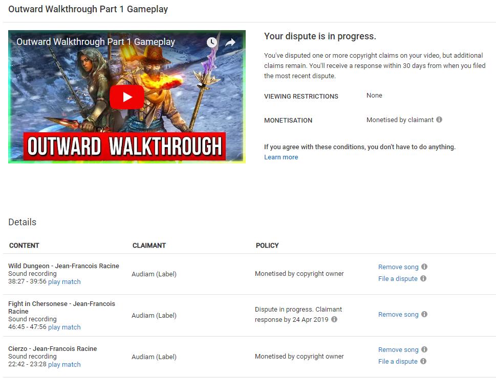 Starting to get hit by youtube copyright claims via Audiam :: Darkest ... Hey there! This morning I received first copyright claims on my youtube channel, issued by Audiam (Label). As they spotted exact tracks of Darkest Dungeon it is unlikely this is an false positive. What this means, is that monetization of Darkest Dungeon Videos is basically not possible anymore as they will be monetized by the copyright owner if not disputed (Audiam).