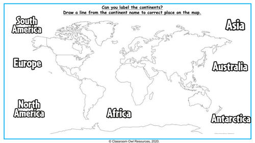 World Map Continent and Ocean Labelling Worksheet - Twinkl This teacher-made continents and oceans worksheet will encourage your KS1 class to locate and label the continents and oceans from around the world. Containing two sheets, the first has spaces for your students to fill in the appropriate names of the continent and oceans.