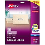Model #: 5660. Brand: Avery. 4.69999980926514 350 Reviews Write a Review. $54.99 Box. When you buy 3+ ... Ship your mail with a professional look using these Avery Easy Peel address labels. They're ideal for organizing, identification tasks and high-volume mailing projects. Select from dozens of free templates and designs from Avery, and then ... Avery Easy Peel Clear Address Labels for Laser Printers, 1 x 2.625, 2 ... AVERY Matte Frosted Clear Address Labels for Inkjet Printers, 1" x 2-5/8", 300 Labels (18660) 5,230 28 offers from $4.27 Avery 18660 Matte Clear Easy Peel Address Labels, Inkjet, 1 x 2 5/8, 300/Pack 260 16 offers from $9.55 Clear Gloss Address Labels 1" x 2-5/8", Inkjet or Laser Printable,Easy to Peel, 750 Labels - 25 Sheets 103 1 offer from $32.99 Avery Matte Clear Address Labels, Sure Feed Technology, Laser, 1" x 2-5 ... Buy Avery Matte Clear Address Labels, Sure Feed Technology, Laser, 1" x 2-5/8", 1,500 Labels (5660) with fast shipping and top-rated customer service. Once you know, you Newegg!