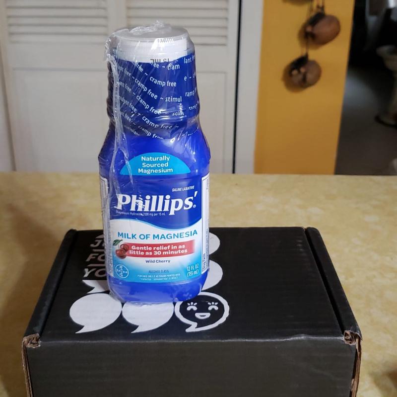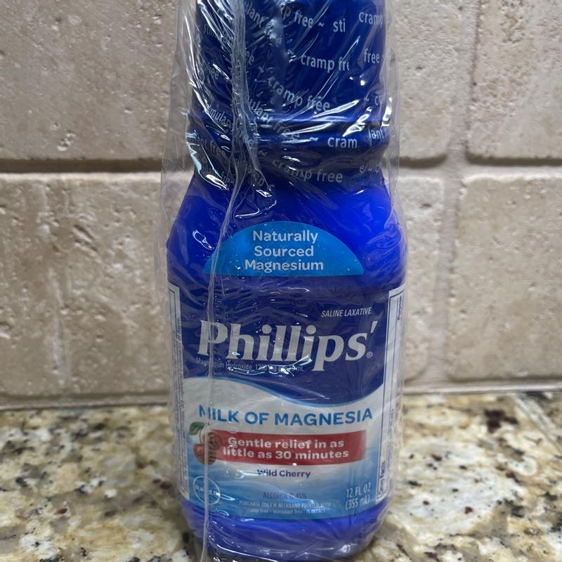 Phillips' Milk of Magnesia Laxative, Original 12 fl oz - Walmart.com Phillips' Milk of Magnesia is a naturally sourced magnesium that is gentle on the stomach while aiding in producing a bowel movement 30min-6hours later, depending on the person & dose taken. Comes with the proper dosing cup, clear instructions, great cherry flavor without being too chalky. Easy to take and get much needed relief.