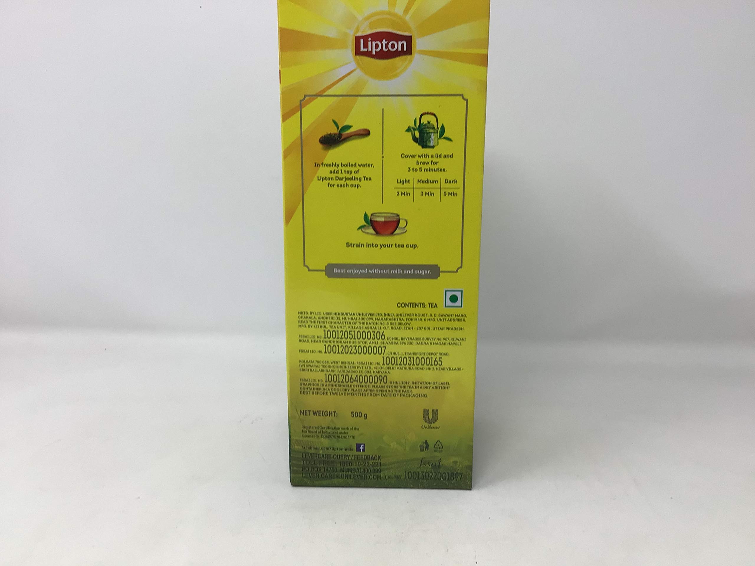 Lipton Darjeeling Leaf Tea (Green Label Tea), 500 gms, (Pack of 3) This item: Lipton Darjeeling Leaf Tea (Green Label Tea), 500 gms, (Pack of 3) $105.00 ($0.07/gram) Lipton 1 Darjeeling Tea, 250G $18.65 ($18.65/Count) Lipton Darjeeling Tea 500 g $33.98 ($33.98/Count) Lipton Darjeeling Tea 500 g 1,453 10 offers from $28.95 Lipton Darjeeling Tea (Green Label) 500g 120 Amazon's Choice in Black Tea Lipton Darjeeling Tea (Green Label) 500g - Sleek Markets Lipton Darjeeling Tea (Green Label) 500g $20.00 Buy product Categories: Beverages, Black, Coffee, Tea and Cocoa, Grocery and Gourmet Food, Tea PRODUCT INFORMATION Over Darjeeling's gentle hills the weather come in combination to provide you with Lipton's Finest Darjeeling Tea - one hundred% pure, black Darjeeling leaf tea.