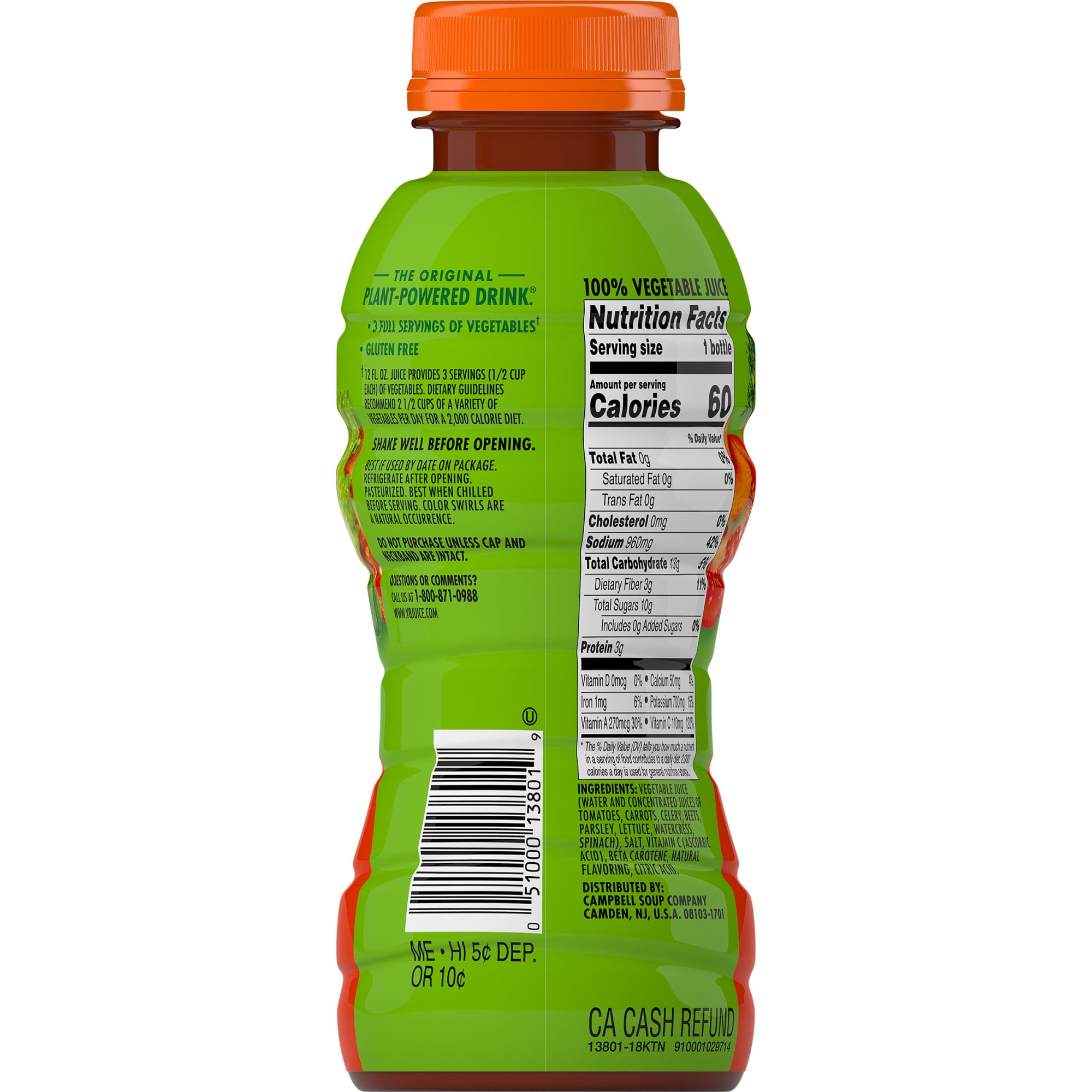 V8 fusion nutrition facts label