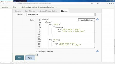 Label Linked Jobs | Jenkins plugin Label's Linked Jobs page. Activate the plugin in the Configure page from a label page (/label/). A new Linked Jobs link will be shown in the left-hand menu for that label. Use it to get to the Linked Jobs page. In the Linked Jobs page you will see all jobs linked to this particular label, either directly or via complex label expression. jenkins - reserved for jobs with matching label expression when using ... I'm tasked to write Jenkinsfiles for a Jenkins cluster that I do not manage. I'm facing an issue where some of my jobs are hanging with the message "xxxx is reserved for jobs with matching label expression" only when using declarative pipeline. However that does not occurs with scripted pipelines.