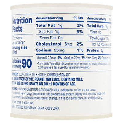 Sweetened condensed milk ingredients label. How to Make Sweetened Condensed Milk (Easy 3-Step Recipe ... Heat the ingredients. Place 2 1/2 cups whole milk, 1 cup granulated sugar, 1/2 cup heavy cream, and 1/8 teaspoon kosher salt in a medium saucepan. Heat over medium heat, stirring occasionally, until bubbles form along the edges of the pan, about 5 minutes. Do not let the mixture come to a boil. Simmer until thickened. What Is Sweetened Condensed Milk? - The Spruce Eats Sweetened condensed milk, often referred to simply as condensed milk, is a product made by gently heating whole milk until about 60 percent of the water has evaporated and then adding sugar to a ratio of about 45 percent (by weight) of the remaining milk. Spanish Flan Recipe Ingredients 1 cup white sugar 3 large eggs 1 (14 ounce) can sweetened condensed milk 1 (12 fluid ounce) can evaporated milk 1 tablespoon vanilla extract Directions Preheat the oven to 350 degrees F (175 degrees C). Melt sugar in a medium saucepan over medium-low heat until liquefied and golden in color. ORGANIC | Santini Ingredients: Organic Cane Sugar, Water, Organic Cocoa Powder, Organic Tapioca Syrup, contains 2% or less of: Salt, Lactic Acid Container Sizes: Net Wt 15.8 oz can (450g) 12 pack of 15.8 oz squeeze bottles (450g) 6 pack of 15.8 oz squeeze bottles (450g) Highlights: mint chocolate sauce -organic California Farms Looking for variety?
